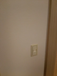 さて、Cの位置ですが、こんな感じで壁とスイッチがあるだけです。ここは実はリビングから寝室に入る時の動線となっています。だからスピーカーを置くために奥行きのある本棚なんかを置いてしまうと、通りにくくなって家族からクレームが来そうです。。
