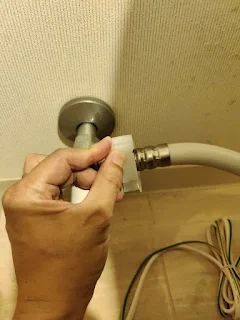 きちんと給水ホースの取り付けが確認できたら、手元の止水栓を開け、水漏れが無いことを確認します。